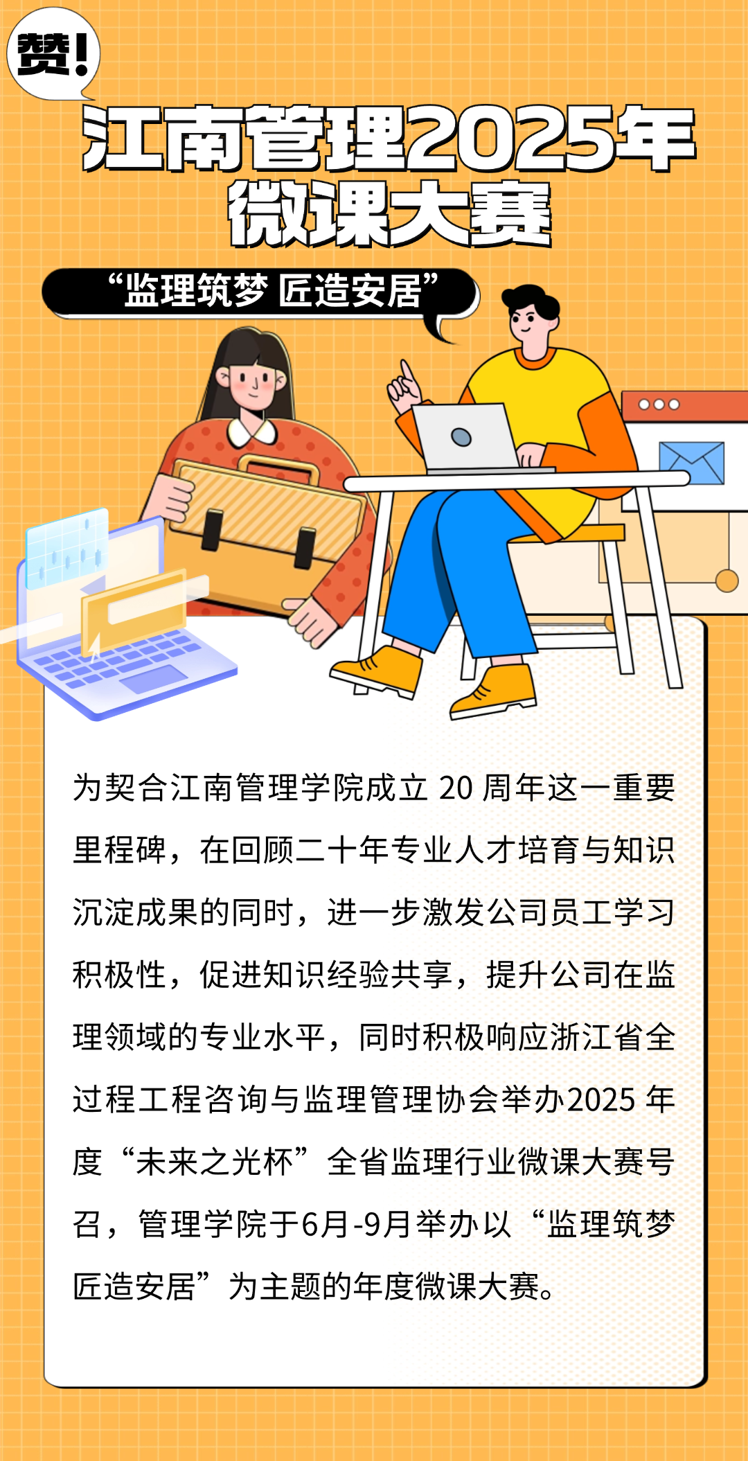 本次微課大賽成功通過激發員工創新活力,將一線經驗轉化為可推廣的智力成果,不僅為企業沉淀了寶貴的知識資產,更為行業提供了可借鑒的數字化學習范式。未來,江南管理將持續發揮行業標桿作用,以人才驅動創新、以專業賦能實踐,為城市高質量發展貢獻更多智慧與力量!