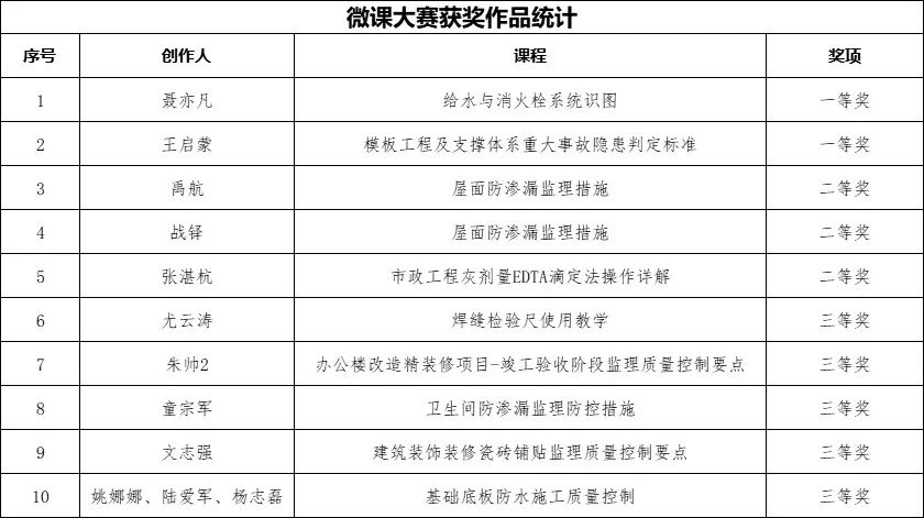獲得一等獎的微課作品以其深入的專業分析、創新的表現形式和良好的教學效果受到評審團隊一致好評,并被當地住建系統收錄推廣。其中有4個優秀作品已選送至浙江省全過程工程咨詢與監理管理協會,代表公司參與2025年度“未來之光杯”浙江省監理行業微課大賽。這不僅代表江南管理的專業水準,更將推動整個監理行業的知識共享和技術進步。