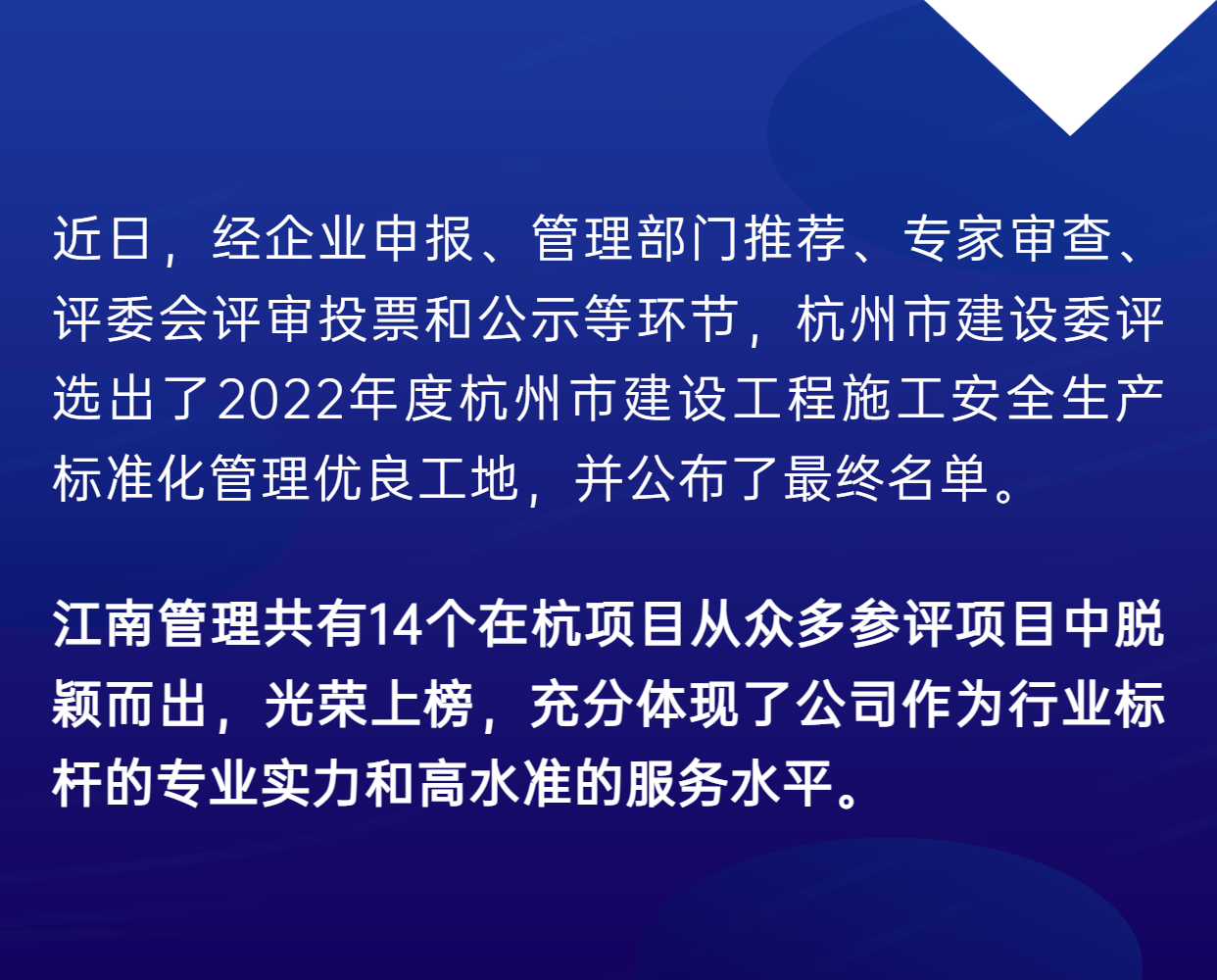 江南管理14項目上榜2022年度杭州市安全生產標準化管理優良工地