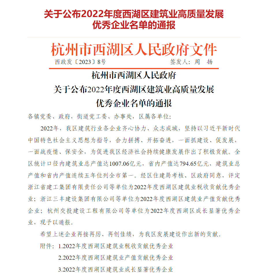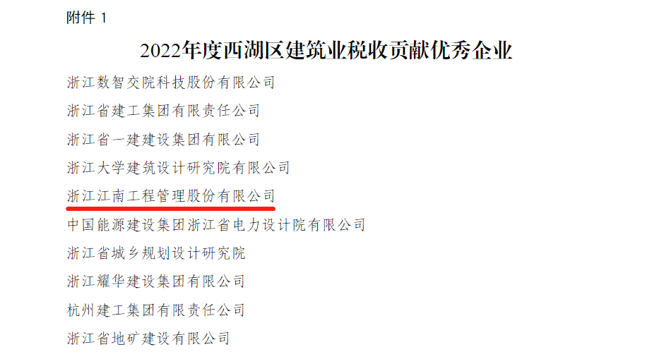 政企合力,開拓奮進:江南管理榮獲“2022年度西湖區建筑業稅收貢獻企業”榮譽稱號