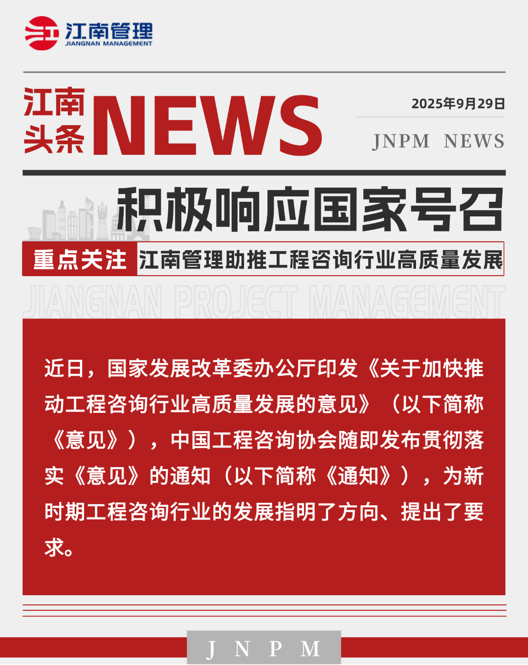 積極響應國家號召 江南管理助推工程咨詢行業高質量發展